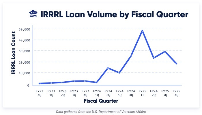 But with the 2025 Federal Reserve rate cuts, IRRRLs made a strong comeback — totaling 119,459 loans in FY2025, more than double the 50,826 completed in FY2024.